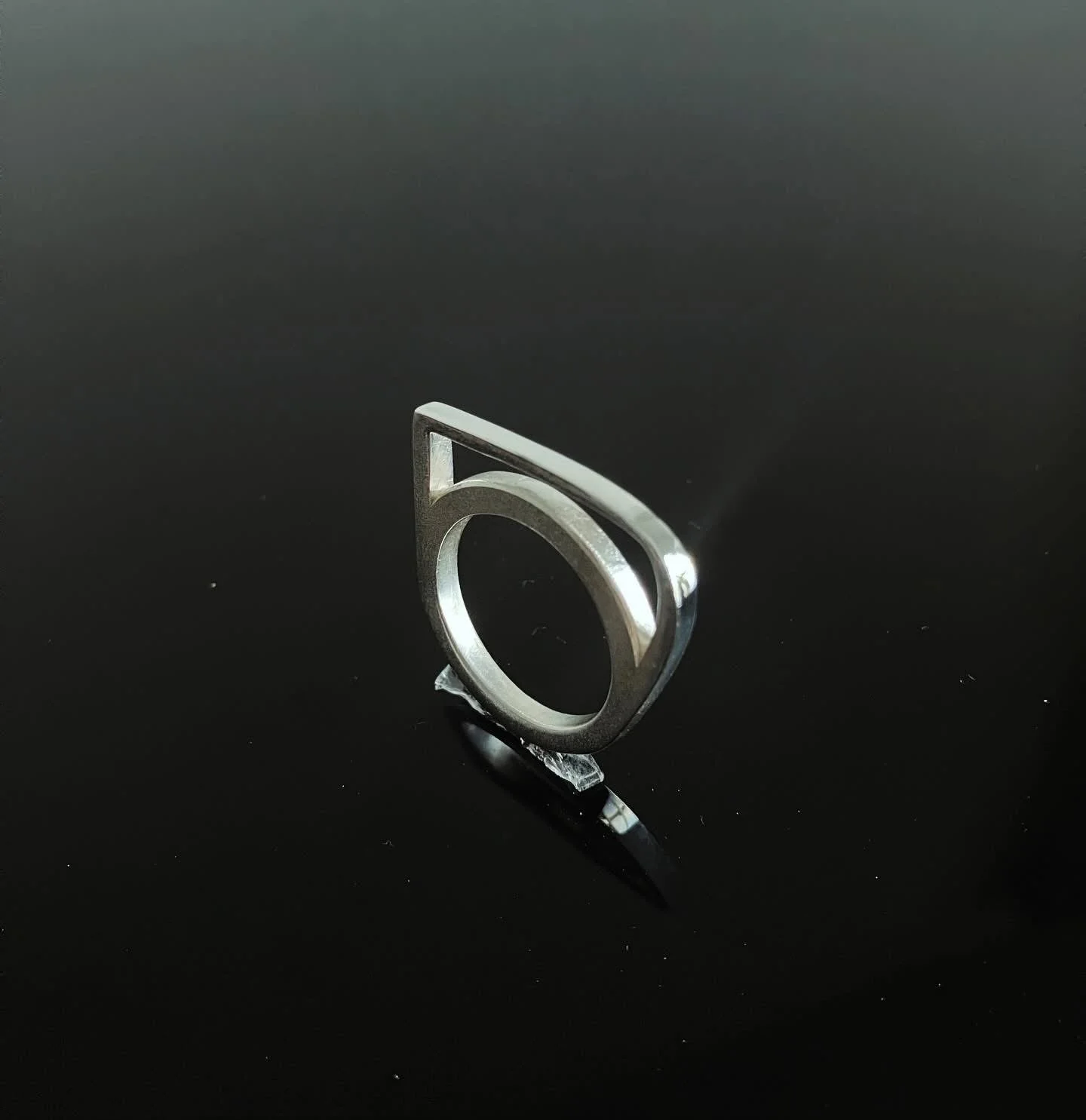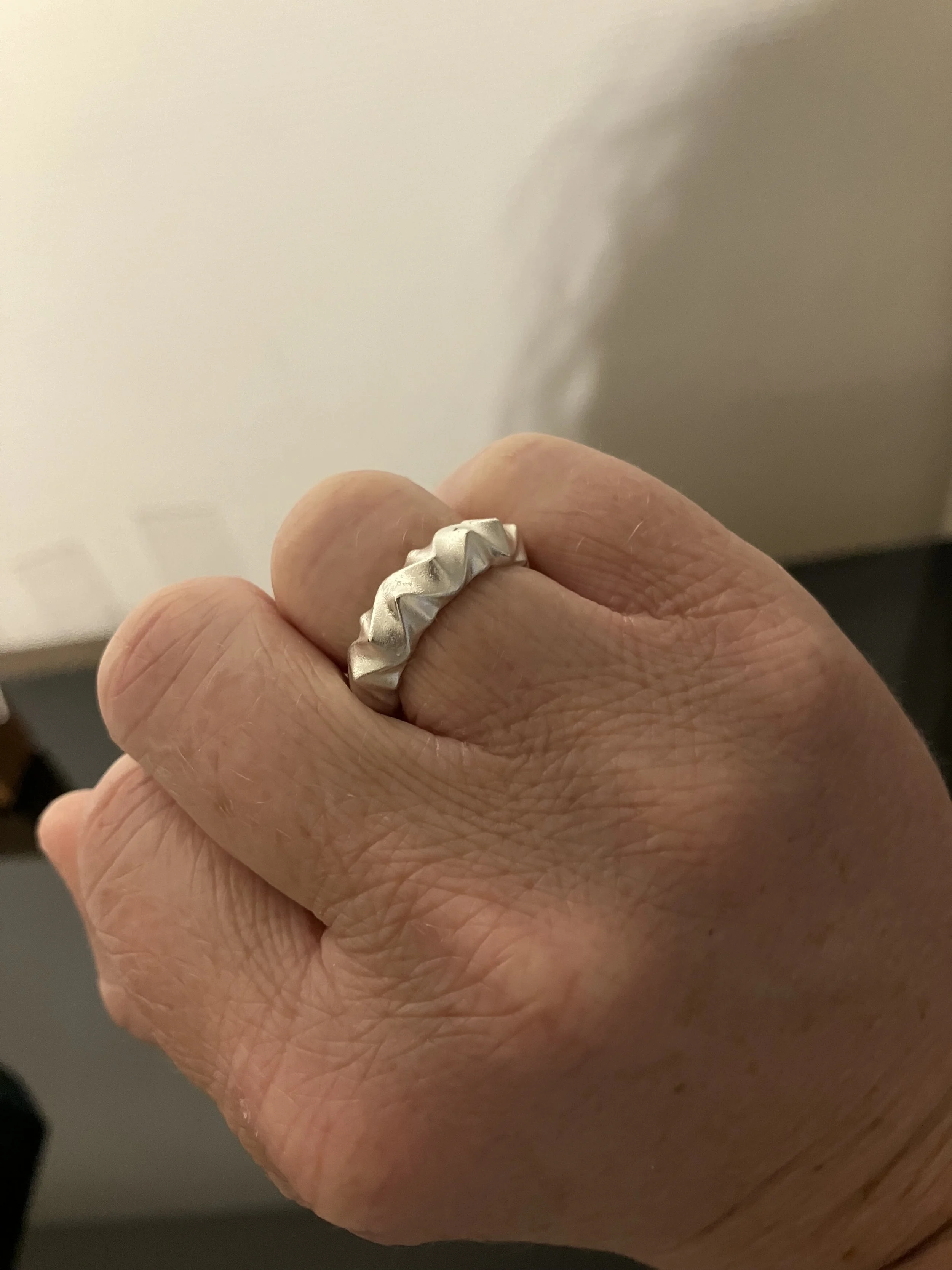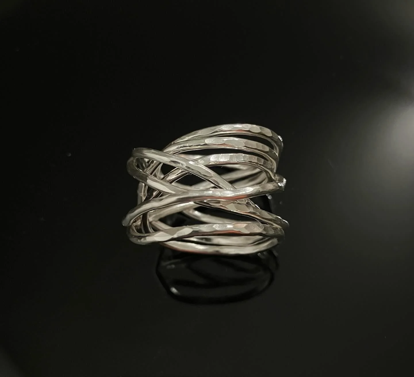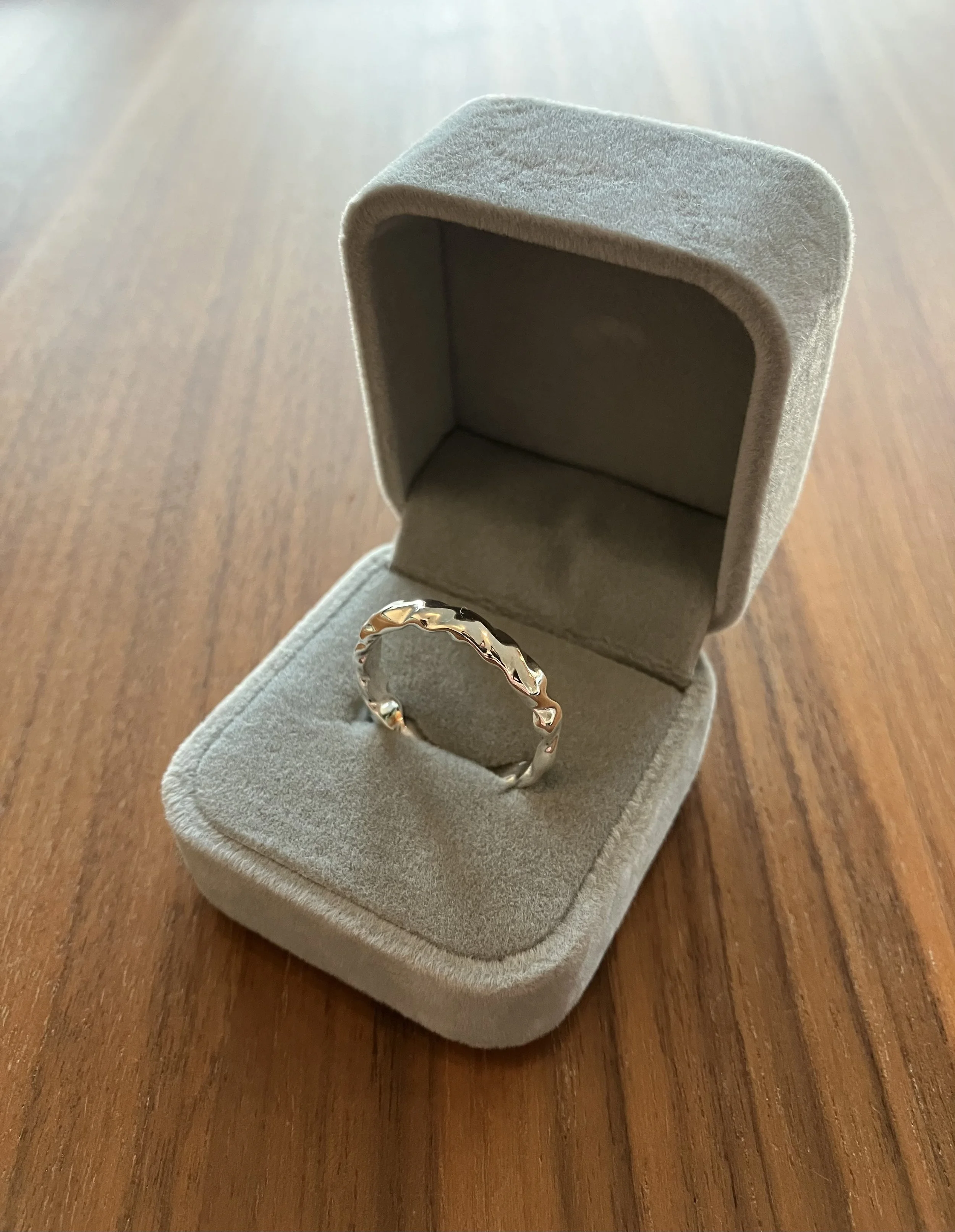 Geïnspireerd op de golven vloeien de vorm van deze ringen over de hand.